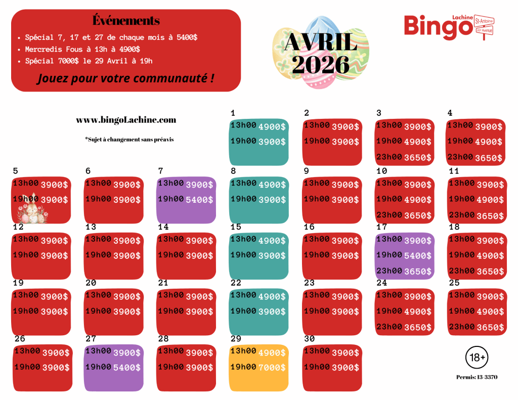 Programmation du Bingo Lachine ce mois-ci